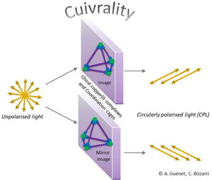 Das Cuivrality-Projekt widmet sich der Entwicklung neuer chiraler Koordinationskomplexe mit zentralem Kupferatom Cu(I), die als Bild- und Spiegelbildkomplexe existieren. Jedes Molekül dieses Molekülpaares wird separat erhalten. Wenn diese Komplexe zusammen organisiert werden, bilden sie größere Einheiten, die stabilisiert werden. Die Komplexe sind aufgrund ihrer optischen Eigenschaften hinsichtlich polarisierten Lichts von wissenschaftlichem Interesse. Das Projekt wird von der Universität Straßburg geleitet und in Zusammenarbeit mit dem KIT umgesetzt. Eucor – The European Campus unterstützt das Konsortium mit dem Förderinstrument Seed Money in der Förderlinie “Forschung und Innovation”.